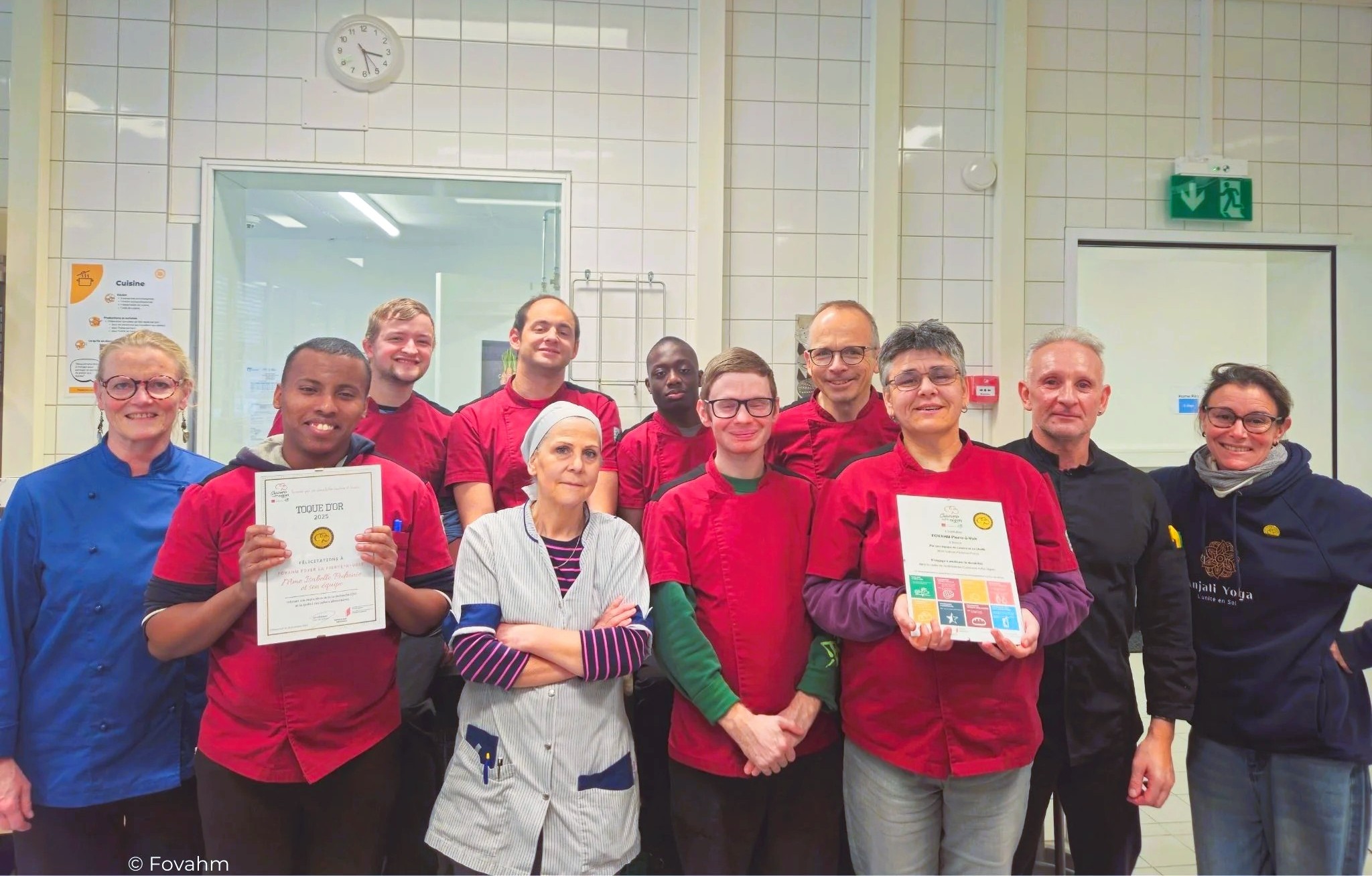 Félicitations à l’équipe de cuisine composée de Cali Axmed Xassan, Tristan Duc, Damien Fournier, Carine Maret, Stéphanie Mottier, Josué Renoult et Nelson Soares Cassama pour leur travail quotidien, accompagnés par Isabelle Pedronie-Possa, cheffe de cuisine, Philippe Granger, maître socioprofessionnel, Olivier Dumortier, cuisinier, Anette Thorsager et Patricia Milhit, aides de cuisine.