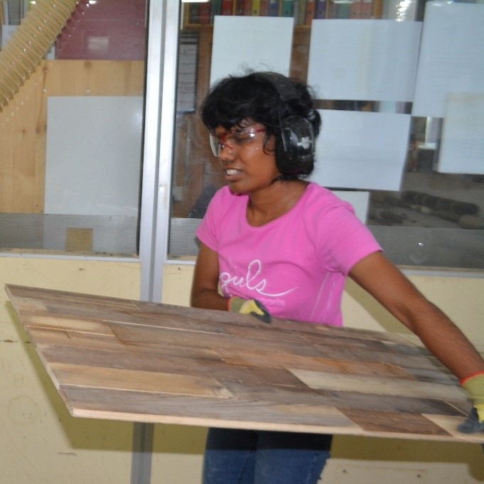 Hélène Raymond, travailleuse à la Menuiserie à Saxon :